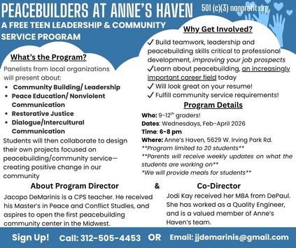 Peacebuilders: A Free Teen Leadership and Community Service Program!